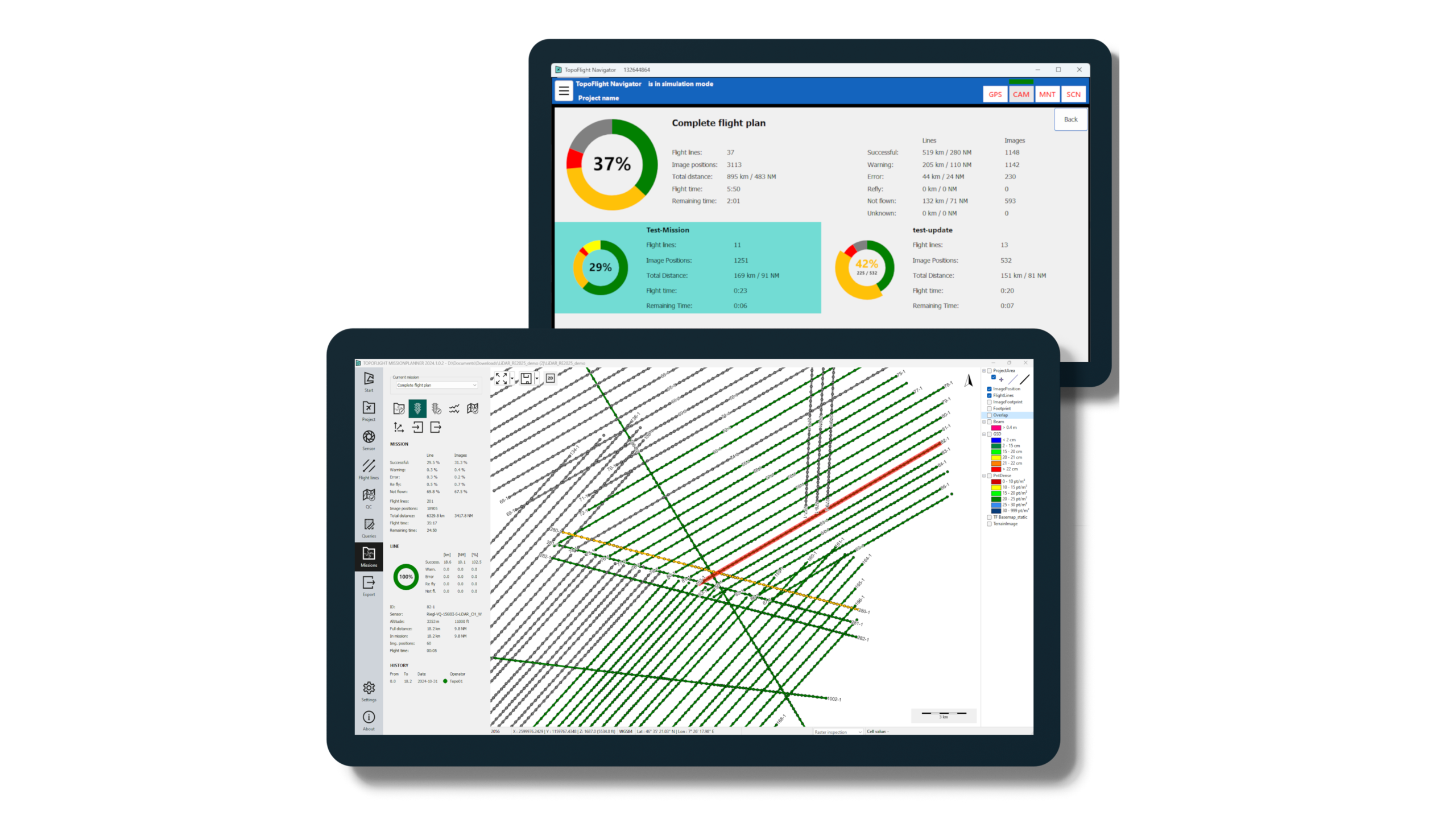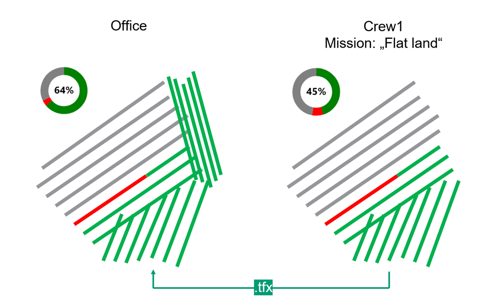 Simply synchronize the .TFX file of your project in MISSIONPLANNER or NAVIGATOR for easy, reliable and transparent data exchange between office-based planning and flight operations.